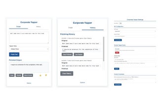 Corporate Yapper är ett kraftfullt tillägg för Chrome som syftar till att förvandla vardagliga tankar till professionellt formulerat innehåll. Med hjälp av avancerad AI-teknologi, såsom Google Gemini eller OpenAI, erbjuder programmet användarna möjligheten att snabbt omformulera e-postmeddelanden och meddelanden för att öka tydligheten och professionalismen. Användare kan enkelt markera text eller använda den praktiska popup-funktionen för att få omedelbara professionella omskrivningar, vilket sparar tid och ansträngning.